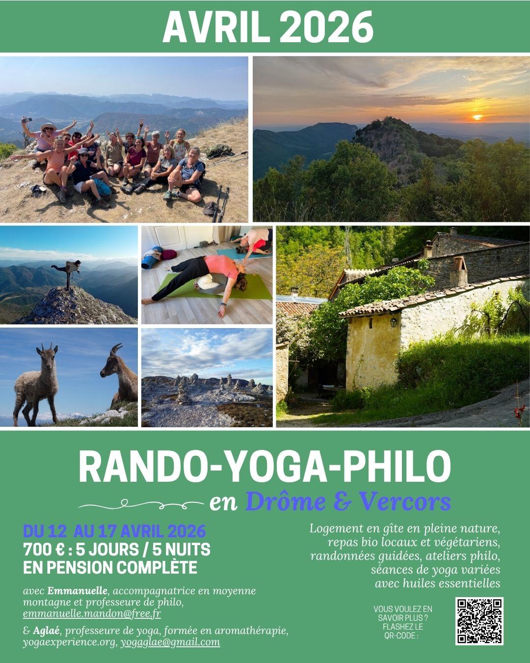 Du 12 au 17 Avril 2026 Séjour Rando yoga philo